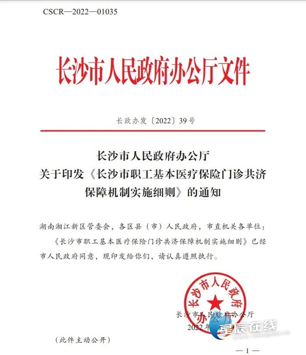 星辰在线8月10日讯(星辰全媒体记者 晨星)8月8日,星辰全媒体记者从长沙市人民政府官网了解到,《长沙市职工基本医疗保险门诊共济保障机制实施细则》(以下简称《细则》)已印发,长沙自2022年10月1日起将实施职工医保门诊共济保障制度,将普通门诊费用纳入职工医保统筹基金支付范围,以减轻参保职工门诊医疗费用负担。