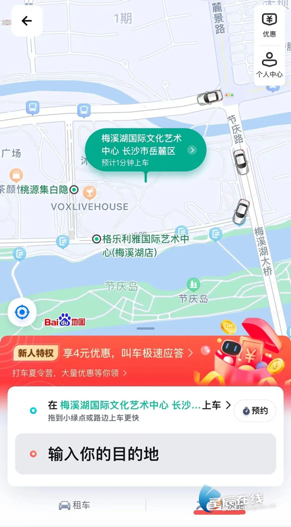 打开“萝卜快跑”APP,选择起点和终点,下单乘坐自动驾驶车。