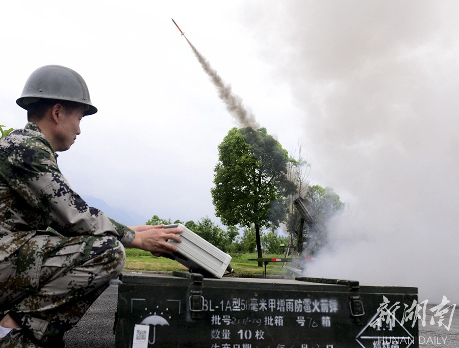 时间一分一秒过去,好不容易等到5点13分,罗欣威准时拨出电话:“你好,这里是长沙35号大瑶人工增雨作业站点,请求发射人工增雨火箭弹。”“可以发射。”得到空管明确批准后,罗欣威立即按下了发射按钮,“嘭嘭”两声,两枚火箭弹迅速冲向云霄,雨点很快落了下来。
