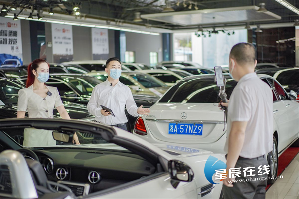 (中南汽车世界主动求新求变,不少门店通过抖音等平台直播推介,吸引全国各地客户前来。 章帝 摄)