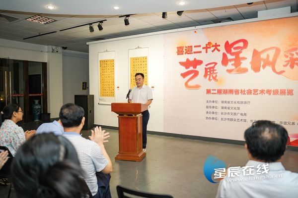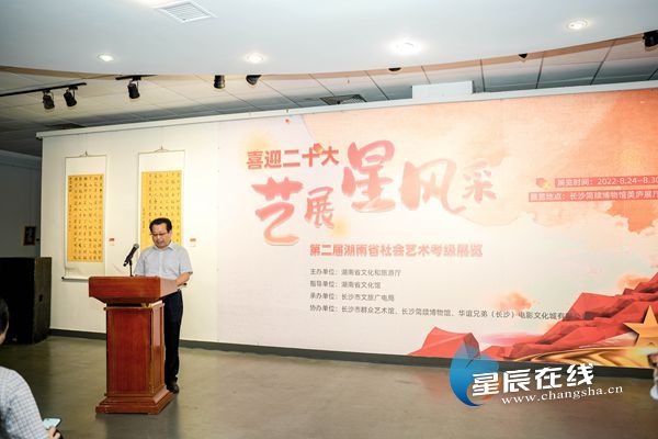 星辰在线8月24日讯(通讯员 王蕾)由湖南省文化和旅游厅主办,长沙市文化旅游广电局承办的“喜迎二十大•艺展星风采——第二届湖南省社会艺术考级展览”于2022年8月24日正式在长沙简牍博物馆开幕。