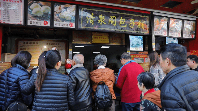 从中山亭过来,就可看见清泉阁包子铺门口聚集人群,这是从解放前就有的老字号。