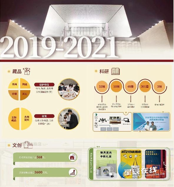 (展览通过图文展板展示了湖南博物院2019年至今全院重要工作数据和照片。)