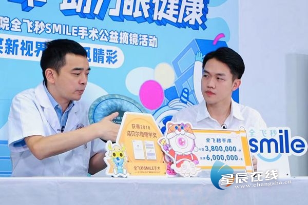 (湖南省人民医院眼视光中心副主任医师副教授<左>为网友进行全飞秒科普。)