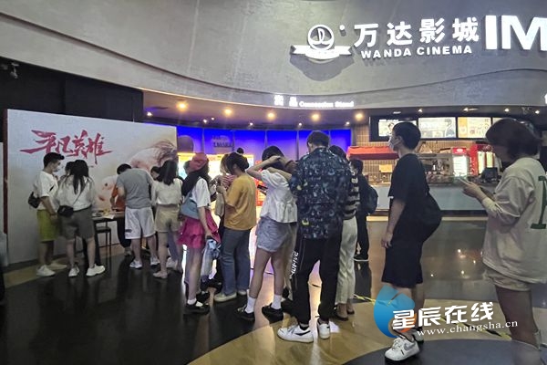 (不少长沙市民早早便在影院排队等候观影。图片均由通讯员 提供)