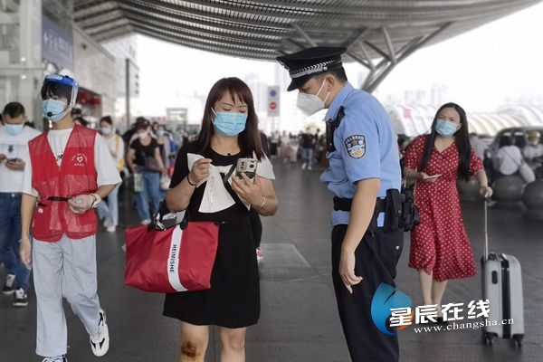 (长沙铁路公安处长沙南站派出所干部民警用坚守向祖国母亲献礼,他们构成了国庆假日靓丽的风景线。)