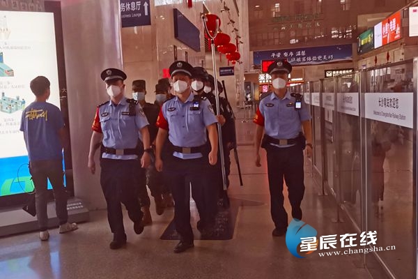 (长沙南站铁警指挥调度,安保防控,确保辖区秩序可控,广大旅客安全平安出行。)