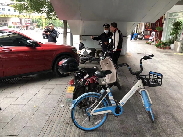 (据悉,10月6日下午,长沙市天心区城管大队赤岭路中队共劝离了6台次违停机动车,抄牌8台次,对沿线的30余辆共享单车进行有序摆放。以上图片均由通讯员提供。)