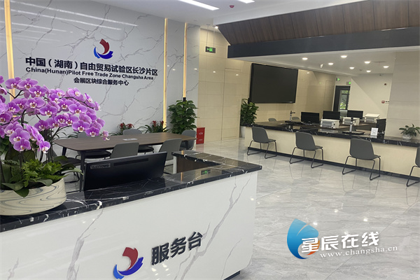 (自贸区长沙片区会展区块综合服务中心已开设12个服务窗口,可办理90多项政务服务事项。图片均为 自贸区长沙片区会展区块 提供)