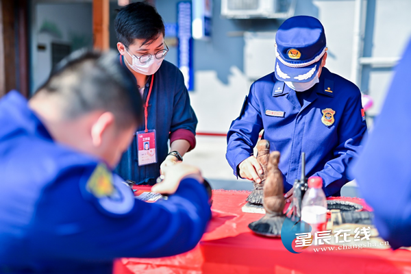 现场不仅设有消防特种消防器材展,非遗文创作品展也显得分外吸晴。此次活动邀请到了活字印刷、扎染、泥书及长沙棕编非遗传承人用非遗文化助力消防知识传播,“安全有漏洞,火灾就钻空”“防火不分四季,时刻保持警惕”等消防安全标语通过非遗展示,颇有趣味。市民群众感受传统手工艺魅力的同时,润物细无声地将消防安全意识牢牢扎根在心中,让消防安全宣传更加接地气、入人心,极大的激发了市民关注消防安全、参与消防安全的积极性。