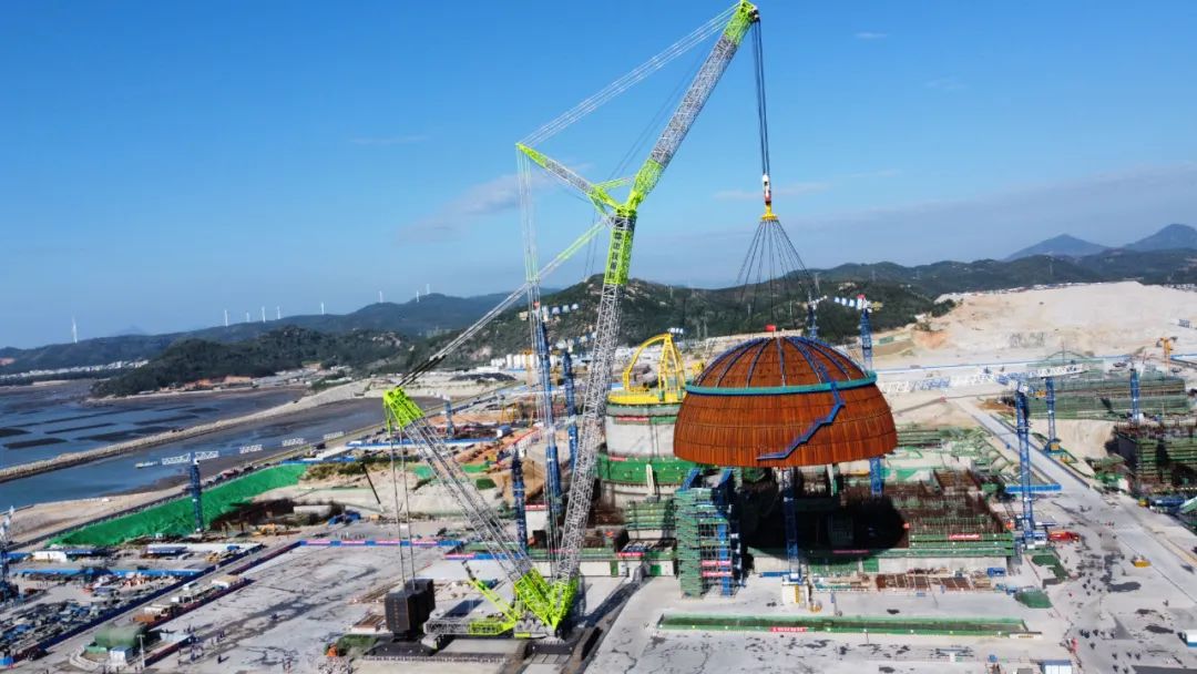 2021年中联重科3200吨履带式起重机吊装“华龙一号”1号机组穹顶。这是当今世界起重性能最强、技术水平最先进的超大吨位移动式起重机之一。