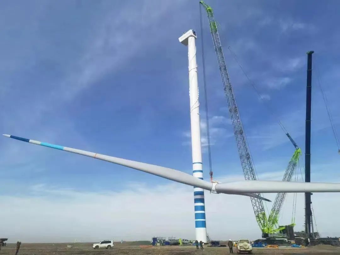 “风电王者”扬威!中联重科履带吊首吊我国单机容量最大风电机组。此次吊装的风机是新疆各大风电基地最大的风机,其轮毂中心高度110米,相当于30层楼高。