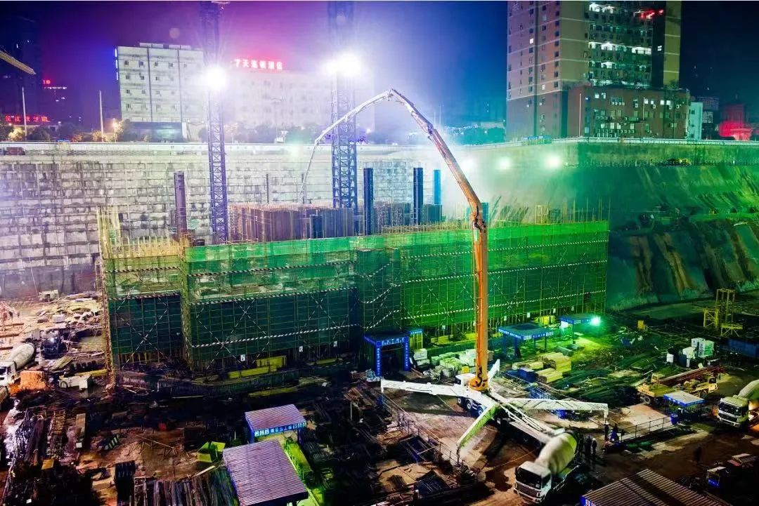 中联重科世界最长臂架泵车101米泵车助建湖南第一高楼——国金中心。42.45米的深坑基创全国最复杂坑基纪录,施工难度全国之最。用于建设的中联重科101米碳纤维臂架泵车创下了吉尼斯世界纪录!