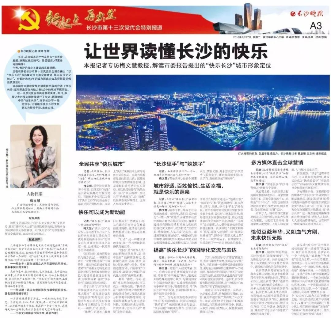 梅文慧教授接受《长沙晚报》专访:解读“快乐长沙”之城市形象定位