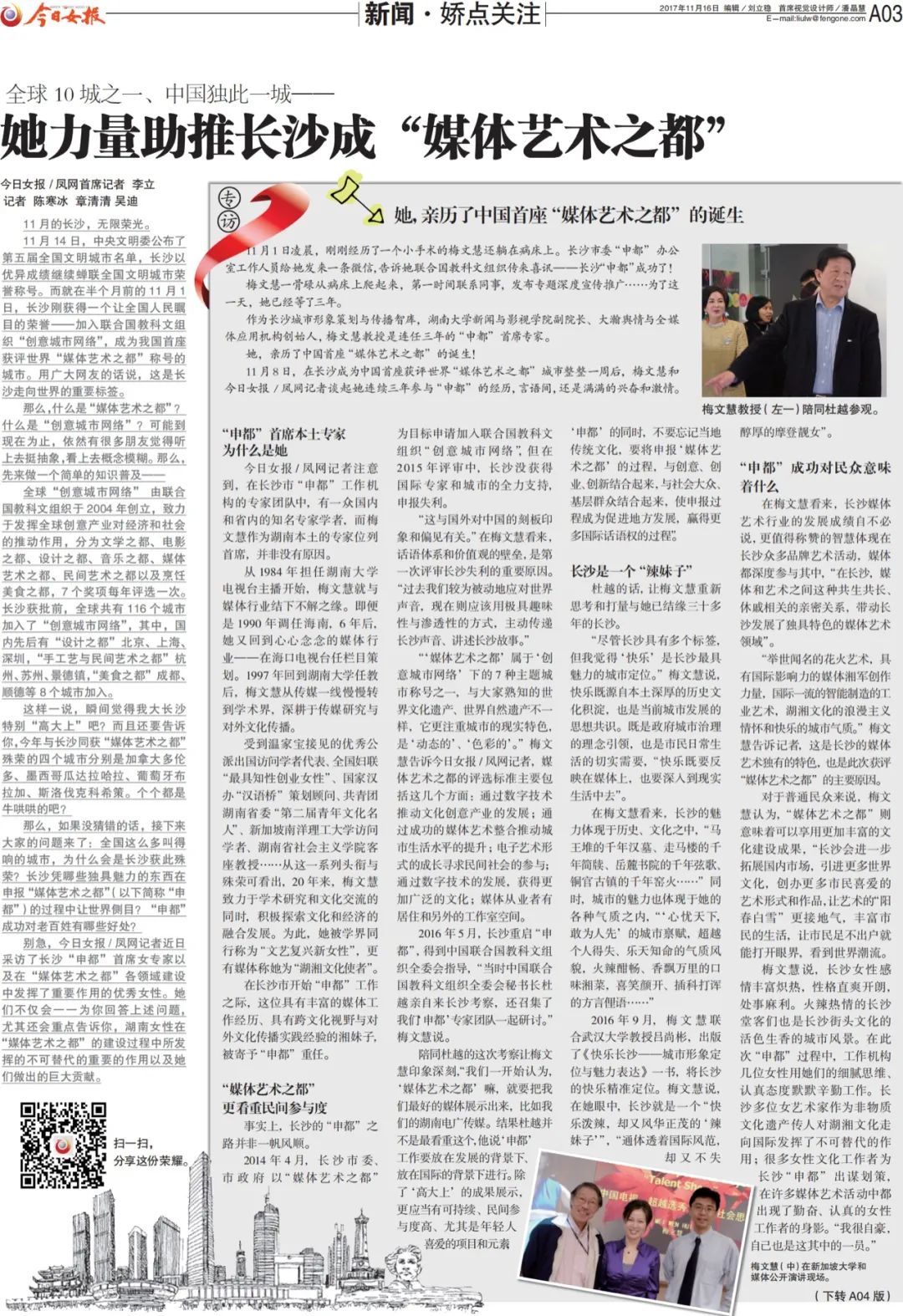 梅文慧教授接受《今日女报》专访:她力量助推长沙成“媒体艺术之都”