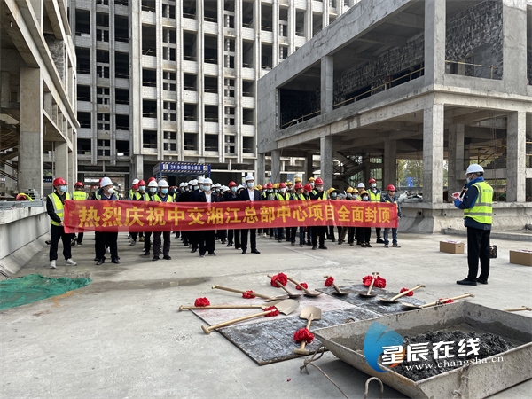 星辰在线11月25日讯(星辰全媒体记者 郭凤湘 通讯员 李振豪 姚诗佳 潘雄)11月25日,由中交二航局投资建设的国家级海归小镇首个项目、长沙望城区130米超高层写字楼——中交湘江总部中心项目主体结构全面封顶。