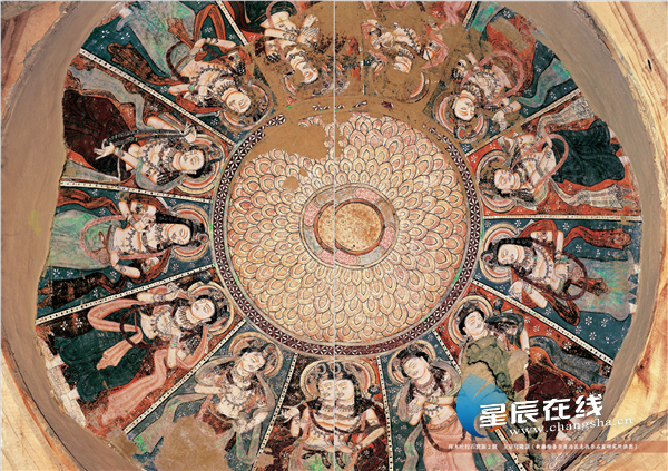 (库木吐拉石窟新2馆主室穹隆顶。)