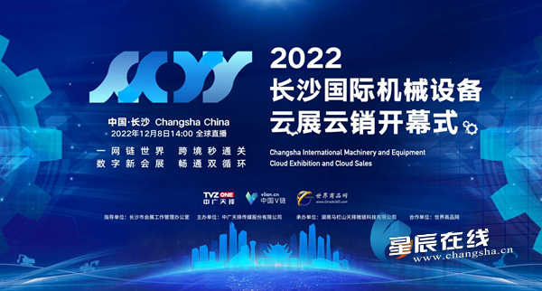 星辰在线12月8日迅(通讯员 徐莹)今天下午,由长沙市会展办公室指导,中广天择传媒股份有限公司主办,湖南马栏山天择微链科技有限公司承办,世界商品网协办的2022长沙国际机械设备云展云销活动在“中国V链”官网(www.vlian.cn)线上开幕。