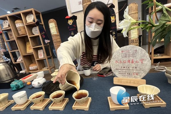 据星辰全媒体记者现场了解,本次展出主要分为“五彩湘茶”、“盛茶以器”、“乐以娱茶”等三板块,充分展示了我国,特别是湘茶的饮茶历史、茶文化发展。千两茶制作技艺、茯砖茶制作技艺、君山银针茶制作技艺、安化松针茶制作技艺、安化红针茶制作技艺、桑植白茶制作技艺等六大湘茶代表技艺均在现场展示。