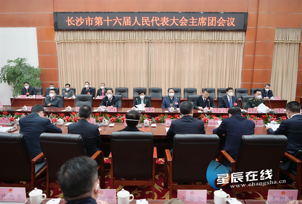 (12月30日上午,长沙市十六届人大二次会议主席团举行第五次会议。星辰全媒体记者 岳珊 摄)
