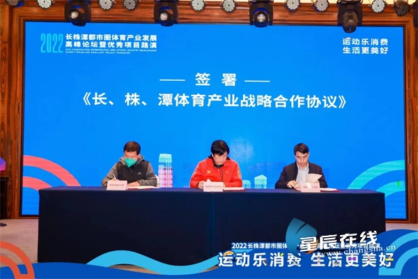 星辰在线1月9日讯(星辰全媒体记者 贺亚玲 通讯员 谢超)1月8日,2022长株潭都市圈体育产业发展论坛举行。会上,长沙市体育局、株洲市文旅广体局、湘潭市文旅广体局共同签署《长株潭体育产业融合发展战略协议》,从联席制度、人才、场馆、赛事、审批等方面全力推进三市体育产业的融合发展。