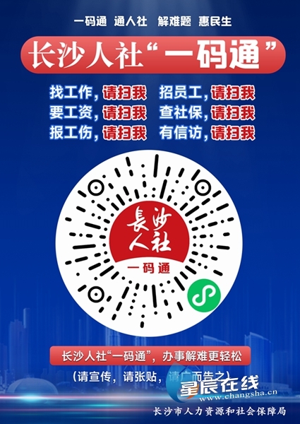 “一码通”上线后,市民只需用手机微信扫一扫“长沙人社一码通”二维码(如下),即可登录小程序。平台接收的所有问题和诉求都将按属地、发生地自动分派到对应的区县市和业务部门,并“限时办结、及时反馈”,确保人民群众诉求“有人管、能落实、有反馈”,架设政府与群众直接对接,主动化解矛盾的桥梁。