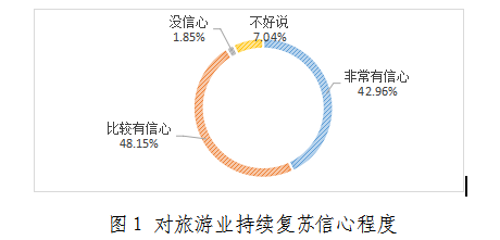 调查显示,91.11%的市民对旅游业持续复苏有信心,其中,有42.96%的市民非常有信心,48.15%的市民比较有信心。而对优化疫情防控措施后旅游业发展趋势,87.07%的市民认为可以恢复至疫情前水平,9.51%市民认为可以超过疫情前水平,仅3.42%市民认为恢复乏力。