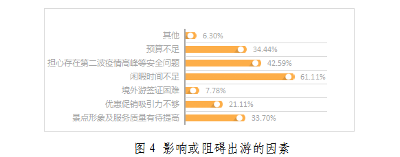当问及“影响或阻碍您出游的最大问题”时,61.11%的市民选择闲暇时间不足,42.59%的市民担心存在第二波疫情高峰等安全问题,34.44%的市民选择预算不足。而对于旅游花费方面,48.47%的市民选择人均每日200-500元,29.08%的市民选择人均每日500-1000元,11.73%的市民选择人均每日低于200元,10.71%的市民选择人均每日高于1000元。