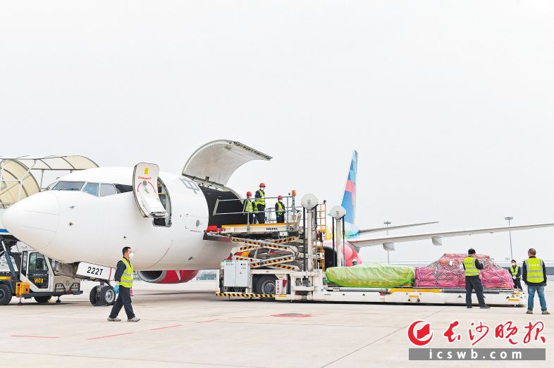(3月16日,长沙至曼谷定期国际货运航线正式通航。均为长沙晚报全媒体记者 王志伟 摄)