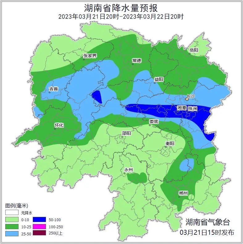 21日20时至22日20时,全省阴天有小到中等阵雨或雷阵雨,其中湘西州中部、怀化北部、常德南部、益阳南部、娄底北部、长沙、株洲中北部、湘潭部分大雨,娄底市区、涟源、安化、长沙市区、宁乡、浏阳、湘潭市区、韶山、湘乡、湘潭县、株洲市区、醴陵、攸县暴雨;北风2~3级,雷雨时局地阵风6~7级;最高气温湘南24~26℃,湘西、湘北13~15℃,其他地区15~17℃;最低气温湘南16~18℃,其他地区10~12℃。