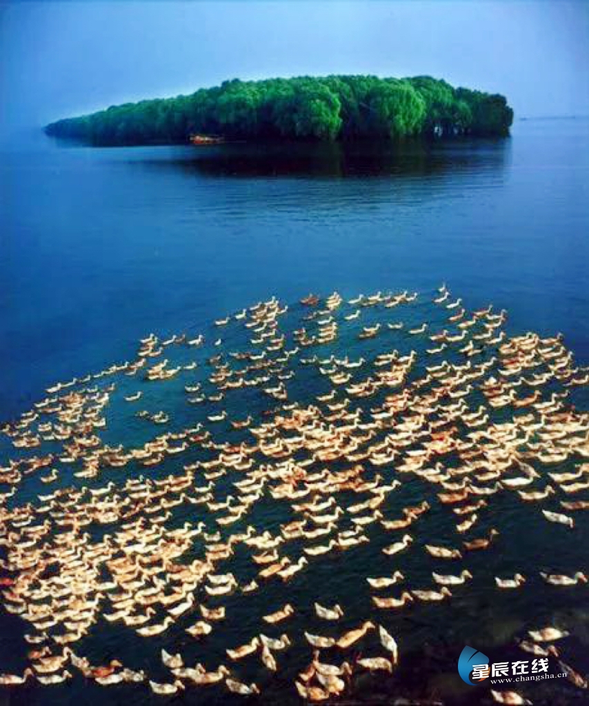(浩浩汤汤的洞庭湖,安静时水清草美的骄人模样。)