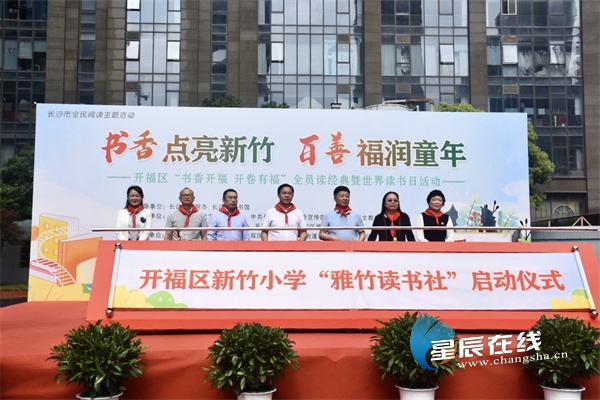 星辰在线4月20日讯(星辰全媒体记者 郭凤湘)4月20日,“书香点亮新竹 百善福润童年”——开福区“书香开福 开卷有福”全员读经典暨世界读书日主题系列活动在新竹小学拉开帷幕。