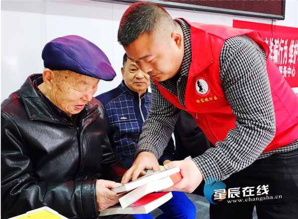 (年轻党员志愿者、雷锋志愿者和阅读爱好者,将《习近平谈治国理政》第四卷等书籍送到社区长者手中,为他们奉上“精神食粮”。通讯员 供图)