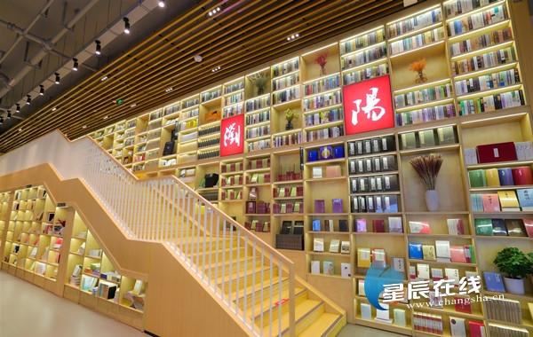 这家有着浓烈的书卷气息和厚重的文化质感的书店,是浏阳市首家复合经营模式的大型现代化图书实体门店。书店营业面积达3500平方米,店内陈列图书6万余种,文创产品展示近万个,图书选品以人文社科类为主,生活美学、未成年人阅读为辅。