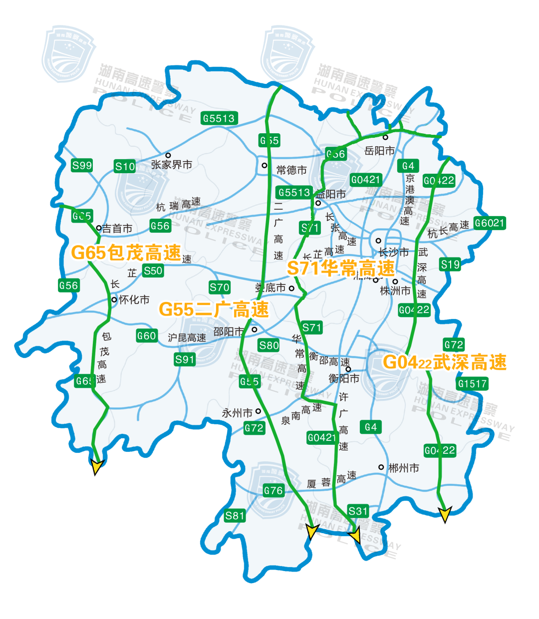 >>G4京港澳高速避堵绕行方案 提醒南北方向过境湖南的朋友:可选择与G4京港澳高速互为平行分流线路的G0421许广高速、S71华常高速、G0422武深高速、G55二广高速、G65包茂高速通行。