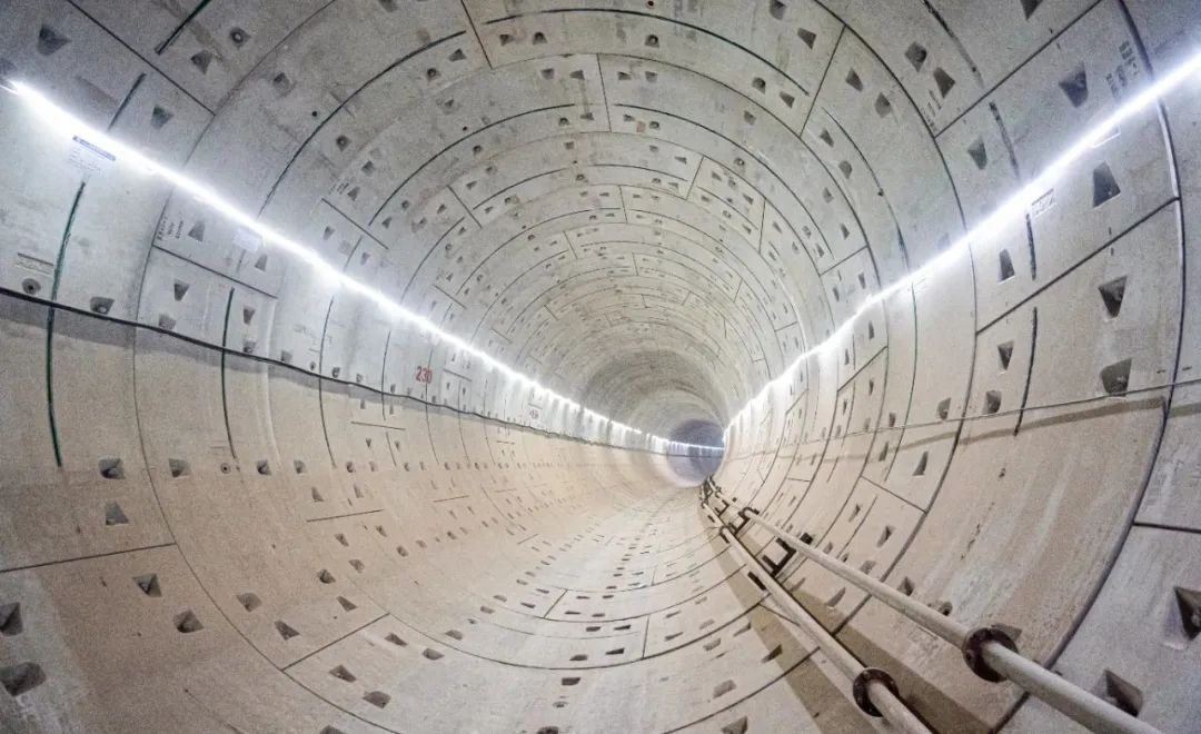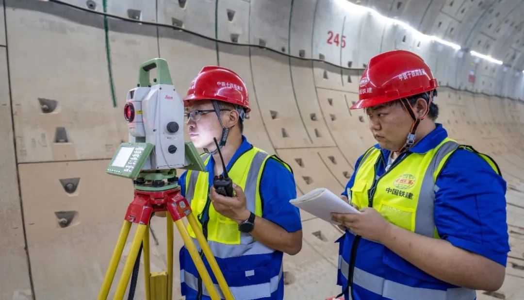 该隧道下穿长沙黄花国际机场敏感区,是黄花国际机场区域内首次盾构下穿施工,沉降控制及安全风险要求高、地下施工难度大。长沙轨道集团严格按照民航有关不停航管理规定,组织多轮专家会审设计及施工方案,在施工前顺利取得盾构下穿飞行区不停航施工许可决定书,为后续施工顺利推进奠定坚实安全保障。地下掘进过程中,盾构机6次下穿机场航油管线,并长距离下穿机场跑道下滑台敏感区、穿越上软下硬地层等风险源群,施工沉降控制直接关系到飞机起降安全。由于存在多段小半径大偏角曲线,83米长的盾构机在地下进行了多次“急转弯”。