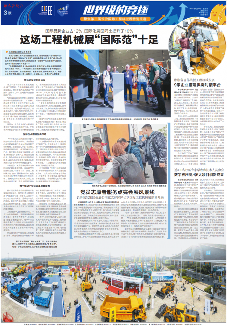 “光是国际品牌企业,就占总参展企业数的12%,国际化展区面积更是同比提升了10%。”长沙国际工程机械展项目执行秘书长张飚表示, 第三届长沙国际工程机械展吸引了更多的省外、国际品牌的加入。众多企业不远千里,漂洋过海,会师长沙,与全球企业一同秀出产业新高度。
