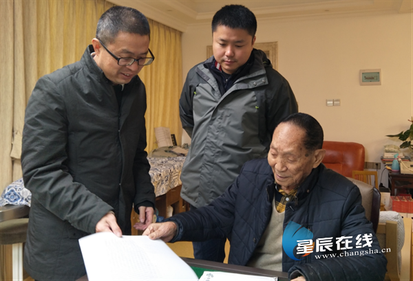 (课题组老师带着韶也向袁隆平院士汇报进展。图片均由 受访人 提供)