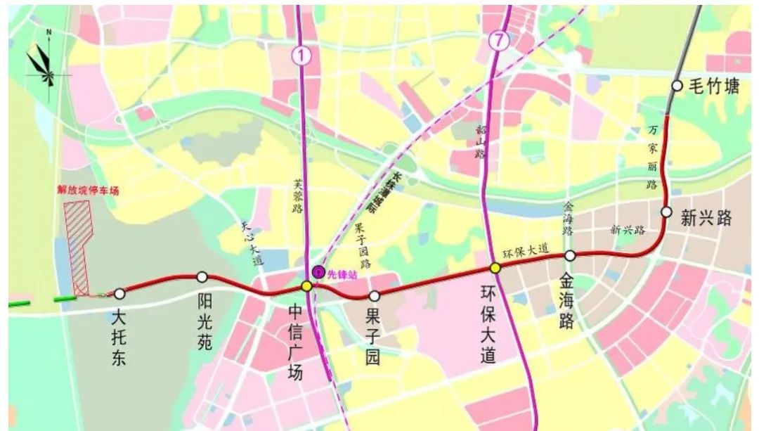 工程起于大托东站,止于毛竹塘站(原时代阳光大道站,本期工程不含),主要沿环保大道、万家丽路敷设,全长8.43公里,均为地下线。设置7座车站,均为地下站,分别为大托东站、阳光苑站、中信广场站、果子园站、环保大道站、金海路站、新兴路站。设换乘站2座,分别为:中心广场站(与1号线换乘)、环保大道站(与7号线换乘),平均站间距约1.2公里。