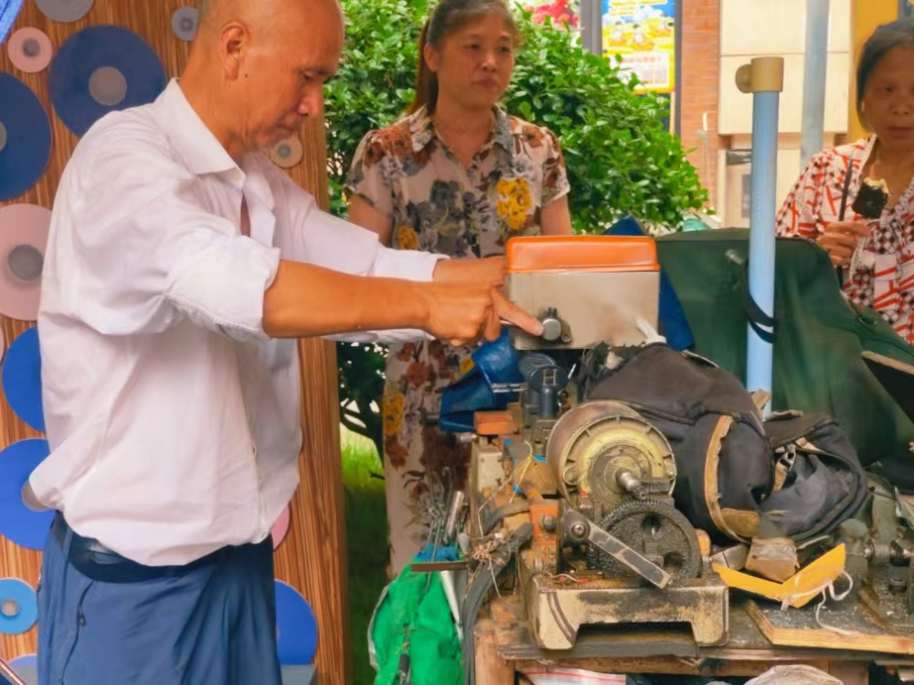 从马路边到社区一角,再到现在的360志愿服务集市,居民们都知道有个全能的“修理工”戴超师傅,他不光手艺精湛,而且还有一颗做公益的心,7年来一直为居民提供磨刀、配钥匙、补锅补鞋等服务。360志愿服务集市开市,戴师傅也是第一时间响应。服务中,戴师傅面对各种维修的“奇难杂症”,总能一眼发现问题所在,三下五除二进行修理,一根根缝纫线、一块块被磨平的磨刀石为社区注入了满满的正能量。