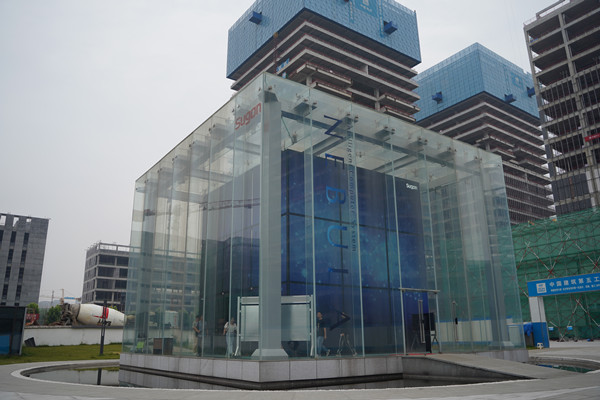 世界计算·长沙智谷是长沙首个新型产业用地试点项目,积极探索产城融合模式,规划有产业办公、商业、酒店、公寓等多元业态,满足新型产业企业生产、园区居民生活多元配套需求。在现场,相关负责人展示了世界计算·长沙智谷的智慧园区中台构架,对中科曙光硅立方进行了演示,科技感十足。