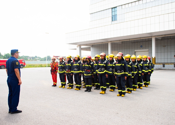 (演练结束后,消防队员们集合。以上图片均由星辰全媒体记者 龙莉 摄)