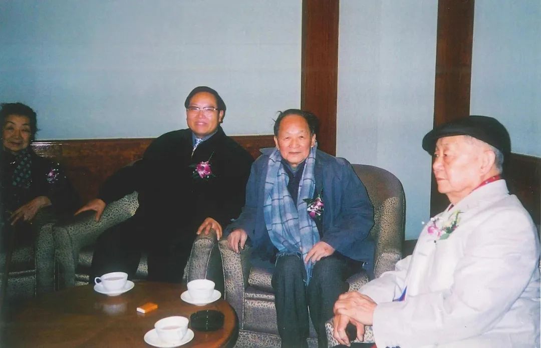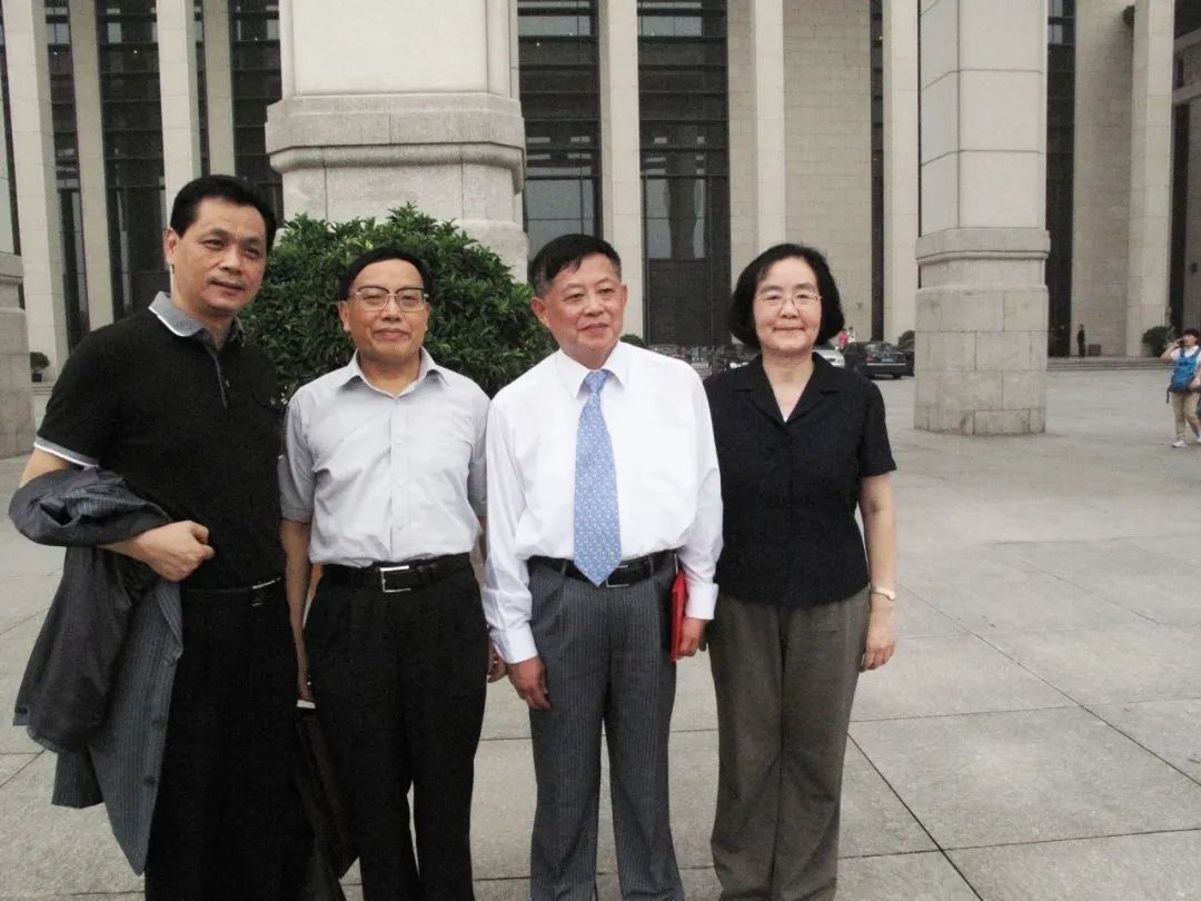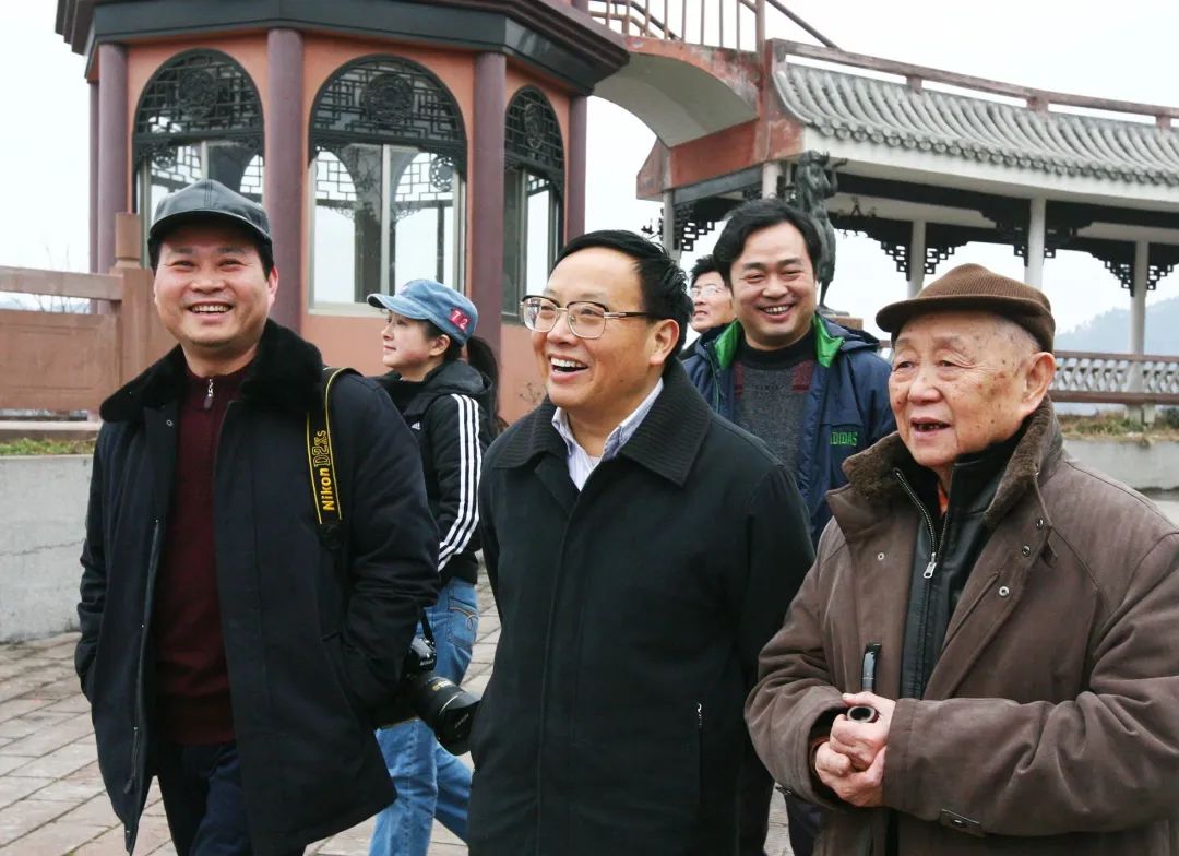 ( 2006年,作者(左一)与时任常德市人大常委会主任莫道宏(右一),陪同返回常德故乡考察的中纪委原常务副书记曹庆泽(右二)。)
