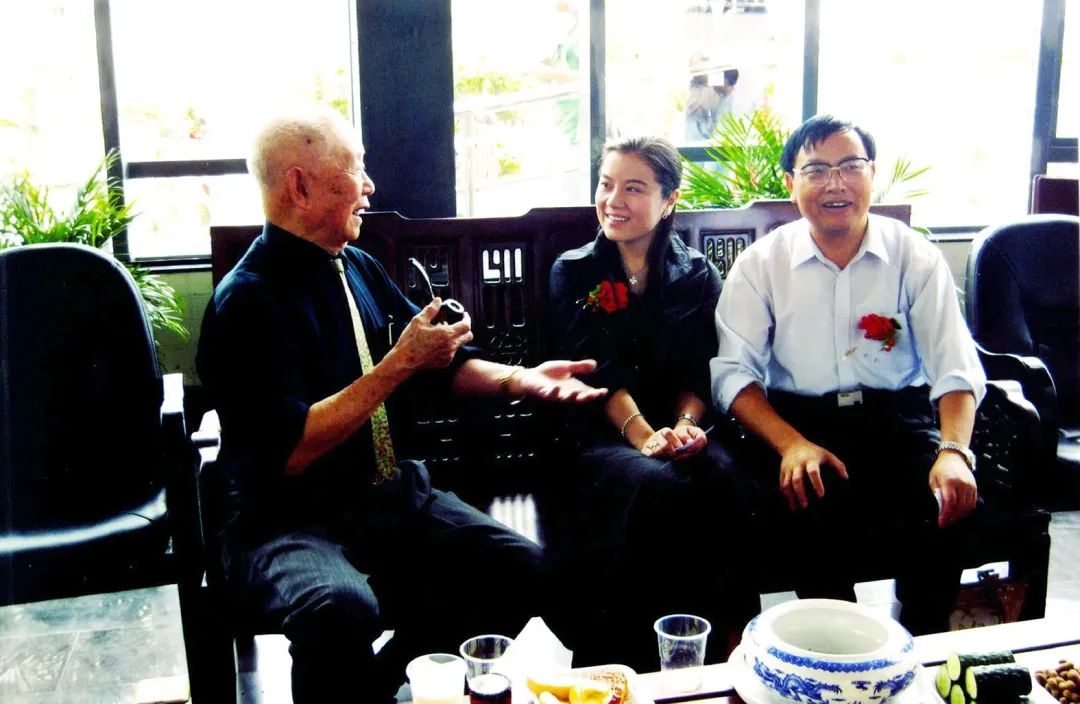( 湘西古丈歌唱家宋祖英与被黄永玉先生称为“凤凰小子”的画家毛光辉,在北京通州万荷堂看望黄老时合影。)