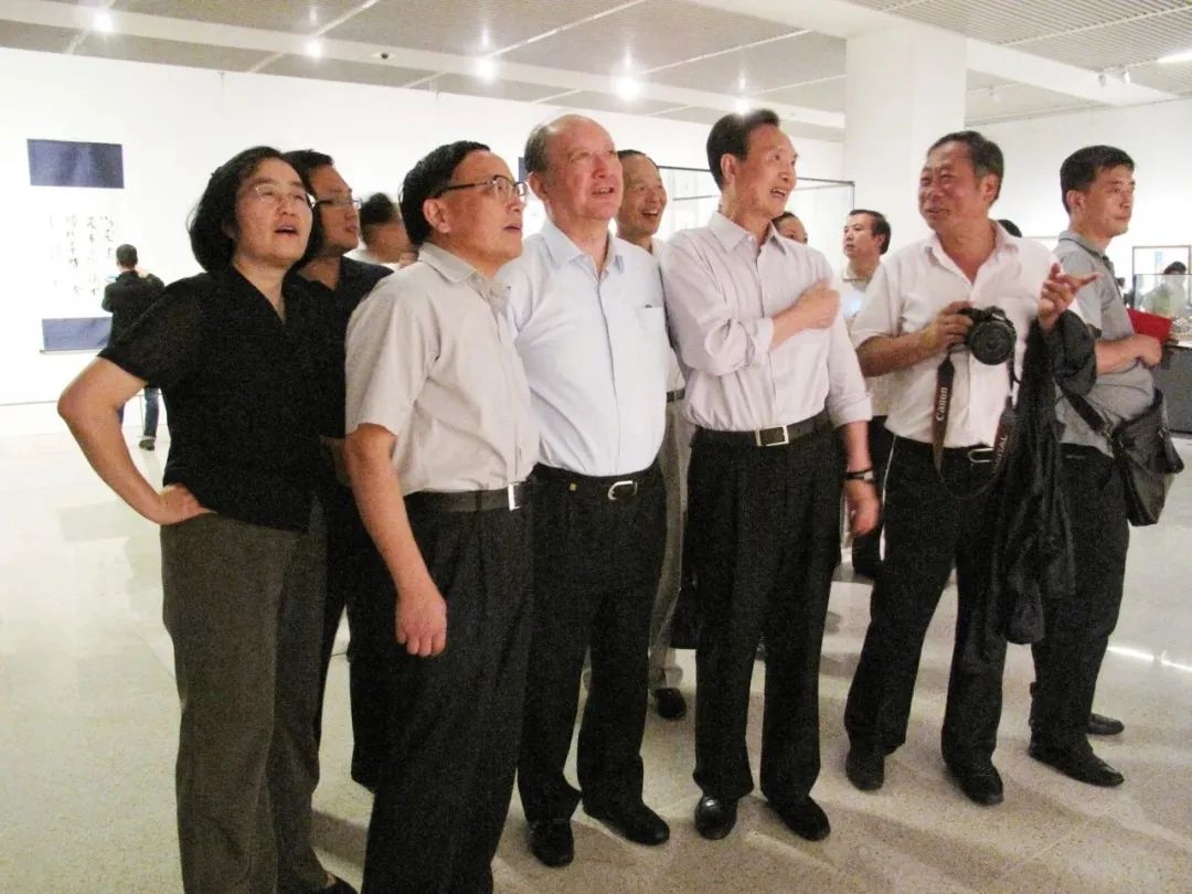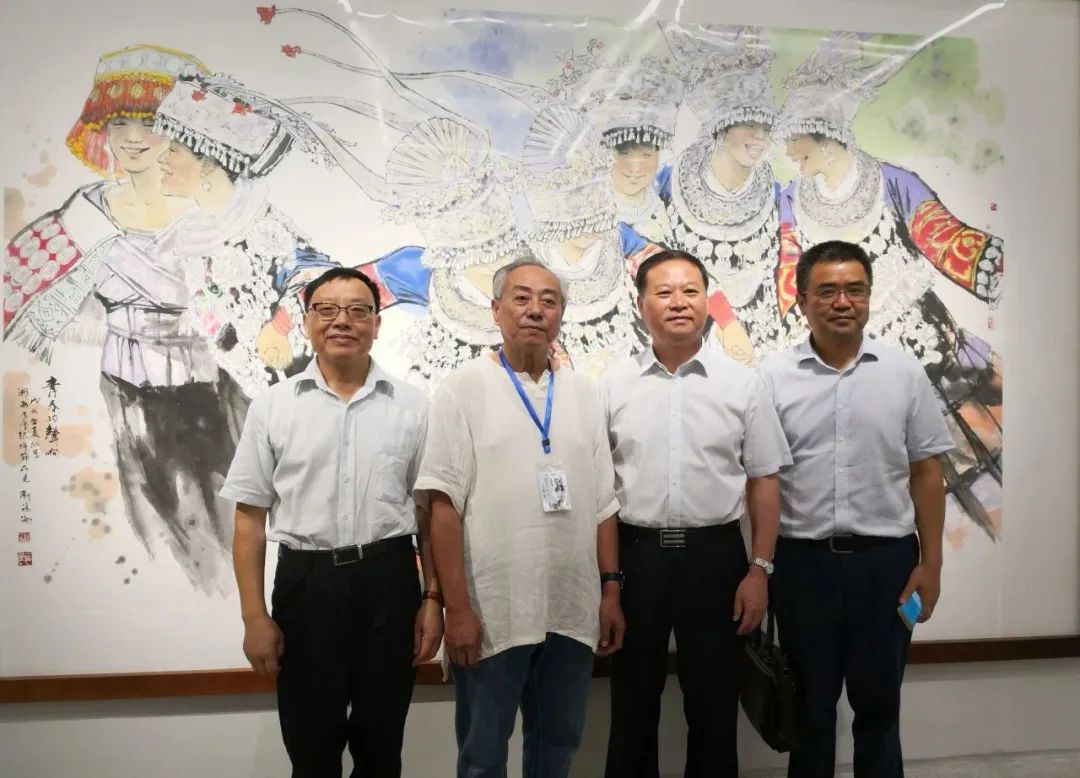 (2018年8月,叶红专(左三)、武吉海(左一)、张永中(左四)到湖南省博物馆参加刘鸿洲先生(左二)画展。)