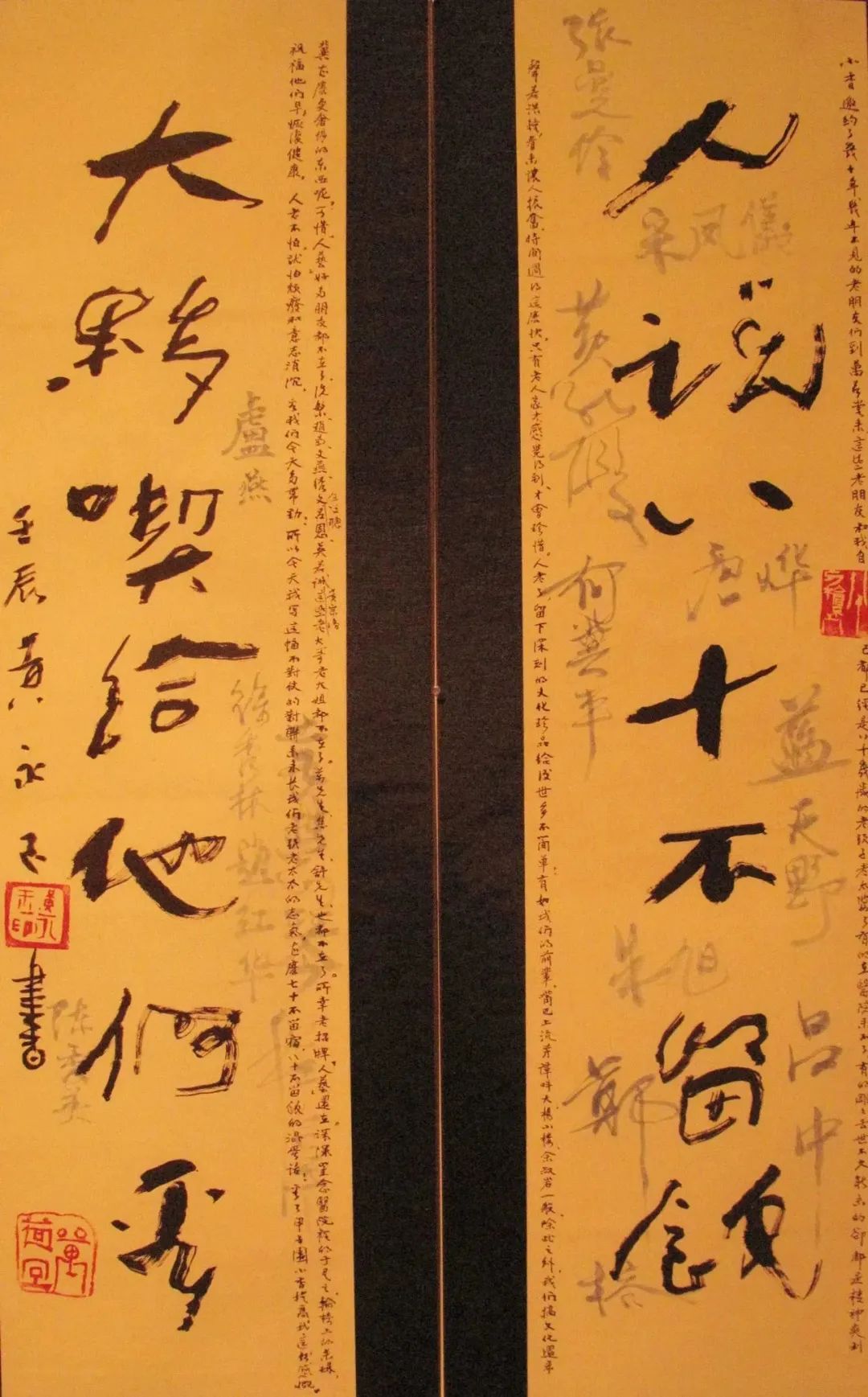 (黄老创作的中堂对联:人说八十不留饭,大伙吃给他们看。)