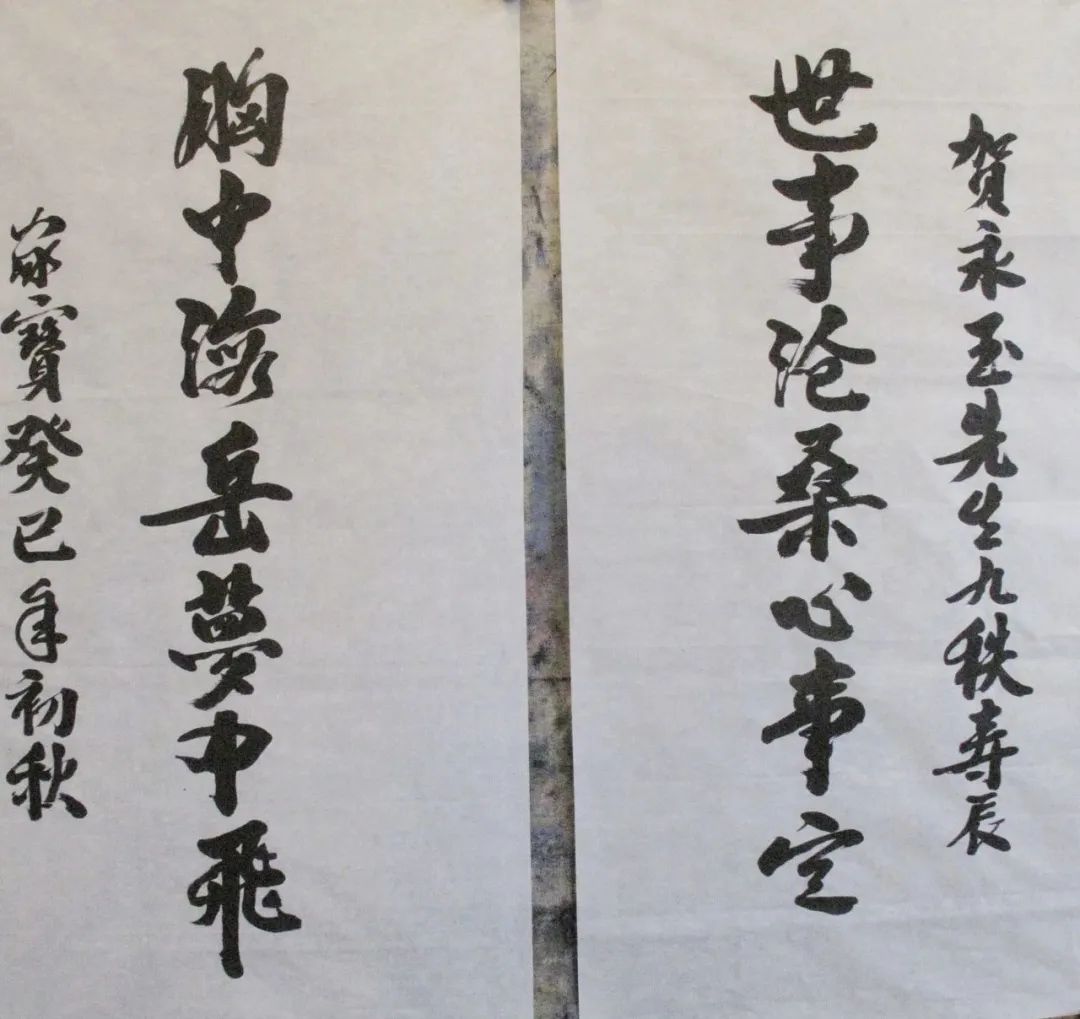 ( 国务院原总理温家宝书法贺寿联:“世事沧桑心事定,胸中海岳梦中飞。贺永玉先生九秩寿辰,家宝癸巳年初秋”。)