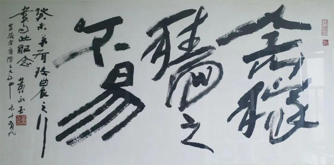 (黄老书法:“念稼穑之不易,癸未弟有务农之行,书此纪念。吉海者,无际之大好也。黄永玉,七十有九”。)