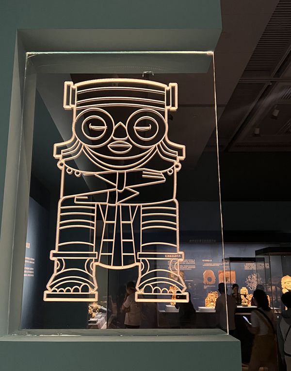 (展览入口处的“王子”豹人石雕,距今已3000多年。)