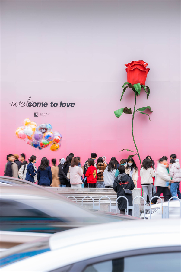 (情人节巨型玫瑰墙。)
